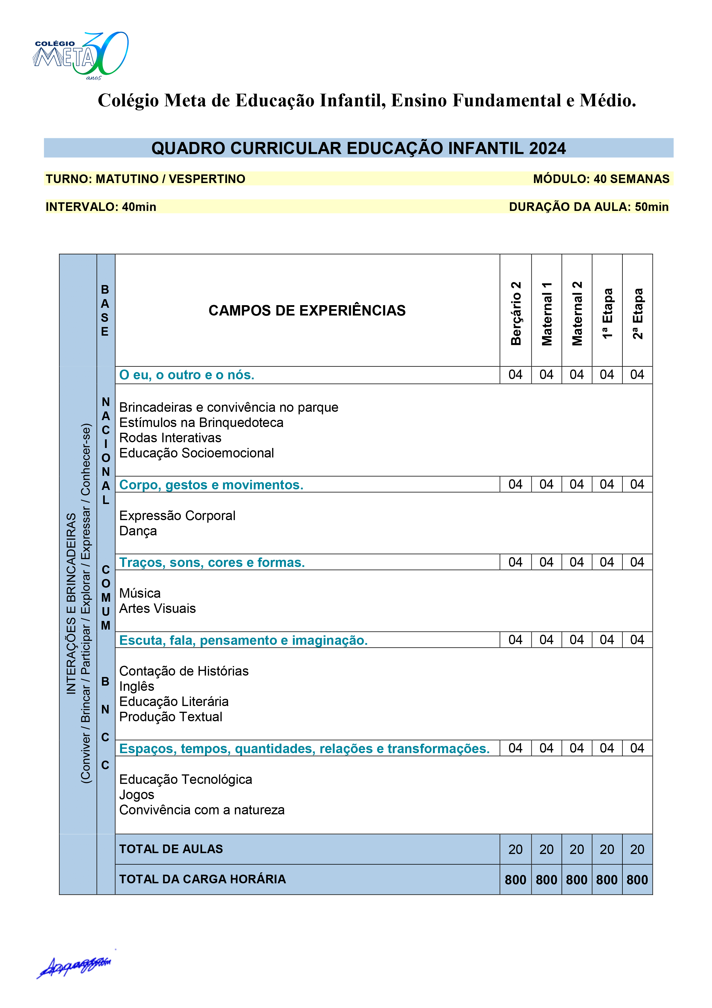O currículo apresentado pelo Colégio traz uma estrutura com base na concepção de que a criança é um sujeito capaz de estabelecer múltiplas relações entre seus pares e entre diferentes adultos, de construir gradativamente a sua autonomia e participar ativamente do universo no qual está inserida. Considerando as especificidades de cada faixa etária e as vivências anteriores de cada criança, promove-se a aprendizagem lúdica e significativa, compreendendo que os processos de ensino e aprendizagem têm por princípio a participação ativa das crianças, enquanto protagonistas do processo de construção de saberes. Nesse contexto, os educadores atuam como facilitadores, motivadores e inspiradores dessa construção, respeitando e valorizando as individualidades.